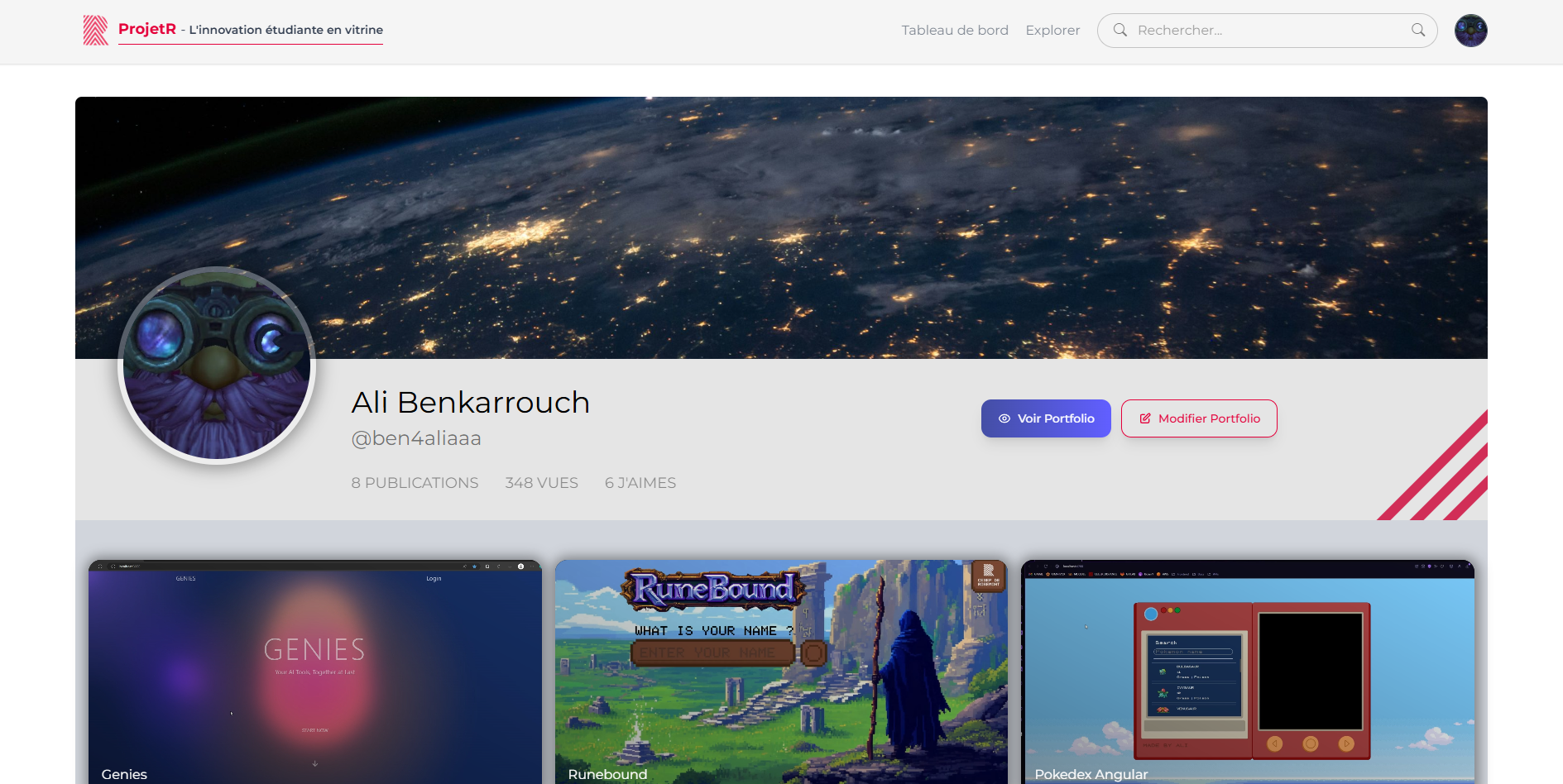 Pour le projet R, j'ai pris en charge le développement de plusieurs pages front-end, en veillant à la fluidité de l'interface et à l'expérience utilisateur. J'ai également conçu les entités et les systèmes nécessaires à la gestion des projets, permettant ainsi aux utilisateurs de publier, partager et commenter du contenu de manière intuitive. En parallèle, je me suis occupé de l'implémentation de l'authentification avec Firebase pour sécuriser l'accès à la plateforme. Cette contribution m'a permis de consolider mes compétences en gestion d'états et en intégration de services tiers dans un contexte de développement d'application collaborative.